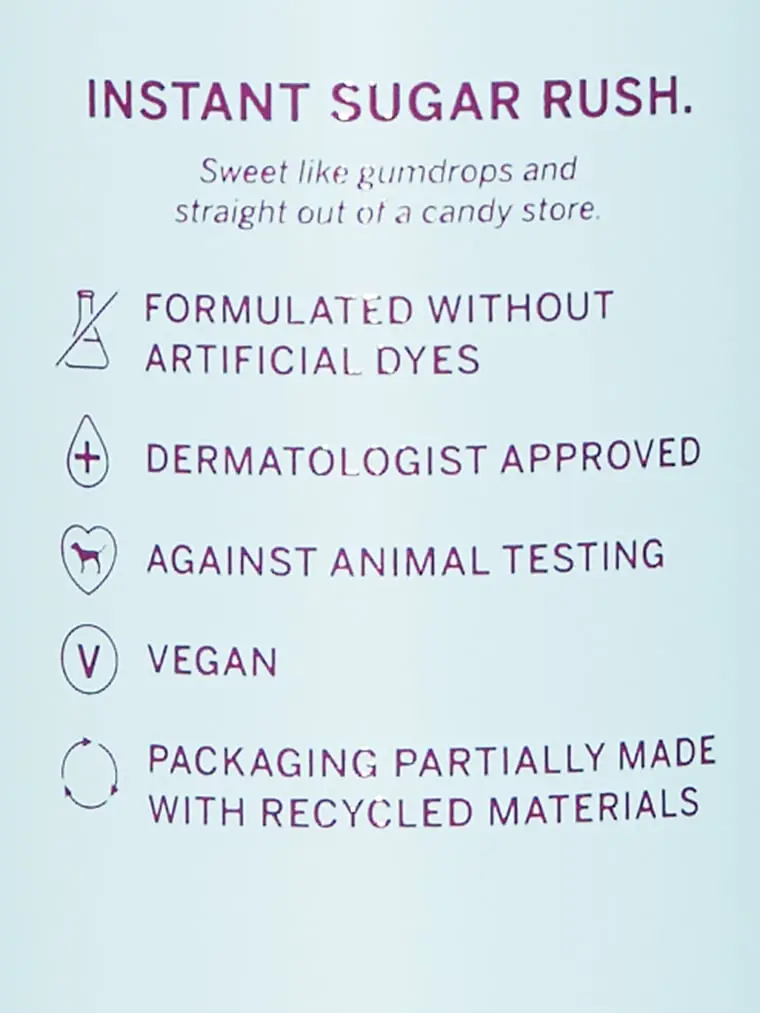 Fragancia superfrutal y deliciosa, como un cubo de azúcar, con notas de fruta de la pasión rosa, azúcar de coco y malvaviscos esponjosos.